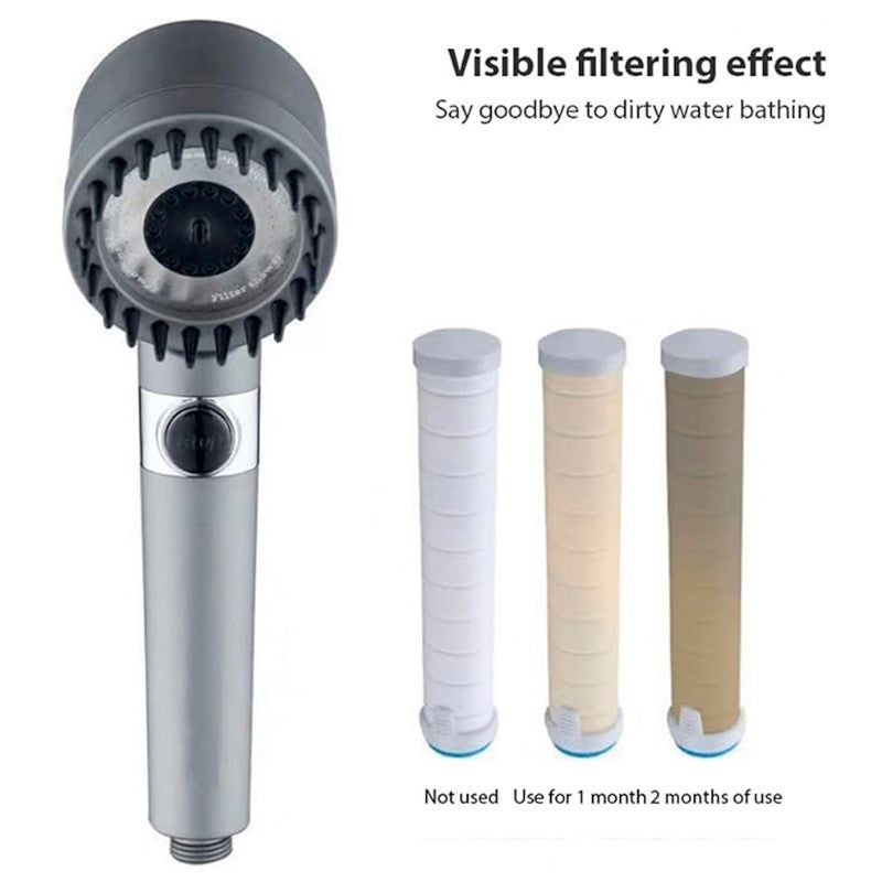 Cuida tu piel y tu cabello con el sistema de filtración de la Ducha Spa Masajeadora. Las esferas minerales en su interior ionizan y purifican el agua, eliminando cloro, fluoruro y pesticidas. Esta purificación profunda suaviza el agua dura, protegiendo tu piel de irritaciones y manteniendo tu cabello saludable y brillante.